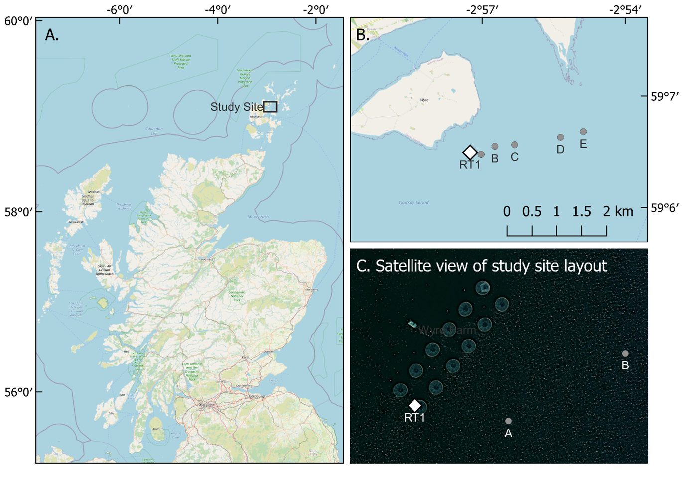 The location chosen for this study was a farm site in Orkney (Figure 1), operated by Scottish Sea Farms. It was selected because of its high density of harbour porpoises in the surrounding area.