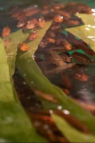 Fish behaviour was recorded at three points in April, May and June using dual GoPro cameras (one overhead, one underwater) and hydrophones. Each session captured 30-minute video samples per tank.
